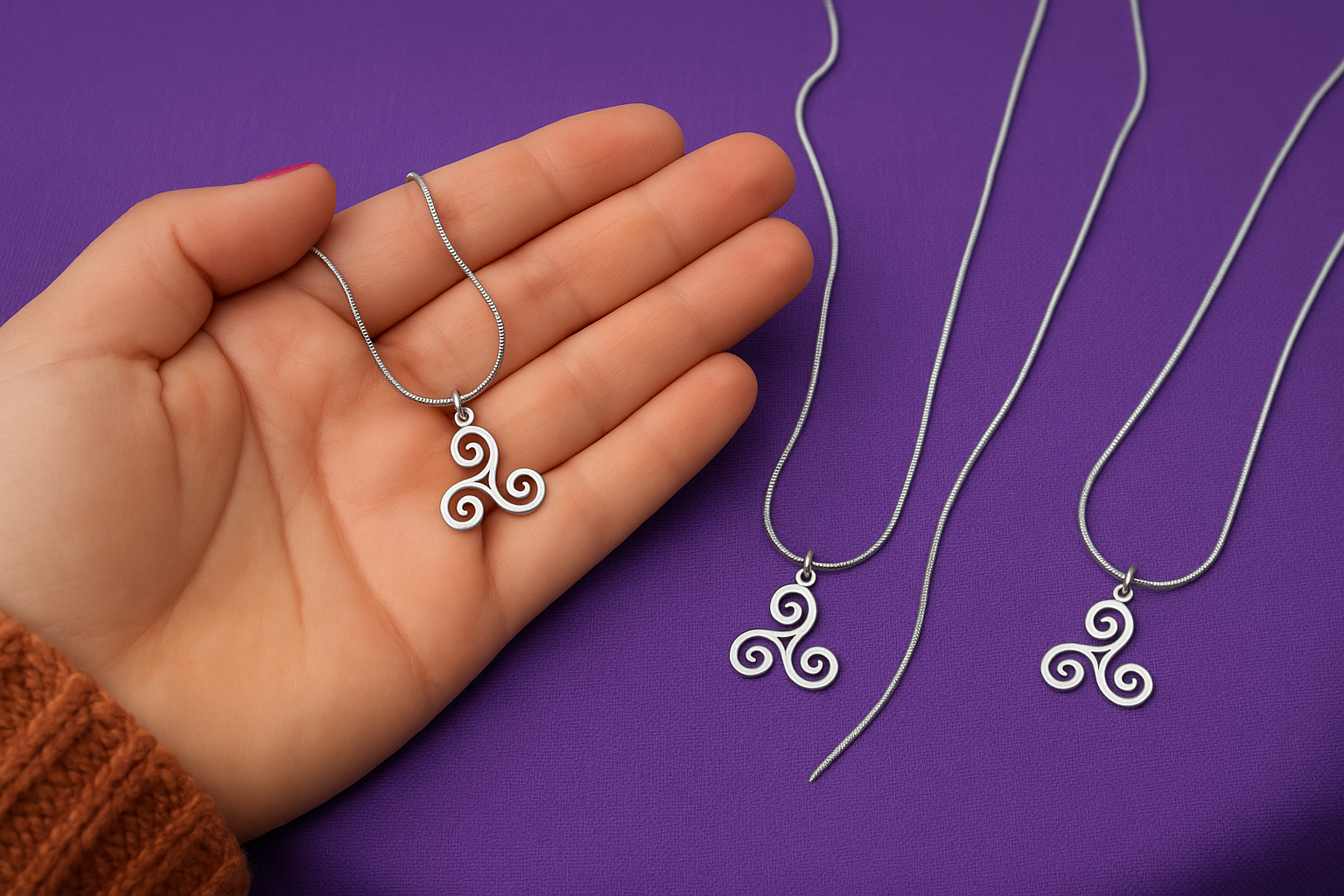 Categories: All Jewelry Candles Mugs Art Bags Book Accessories Hats Apparel Books Perfumes All / Triskele Necklace from $18.00